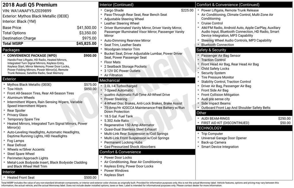 This exceptional 2018 Audi Q5 2.0T Premium quattro is a true testament to the brand's commitment to excellence. Experience the power, luxury, and sophistication that only an Audi can provide. Schedule a test drive today and discover the joy of owning this exceptional SUV.