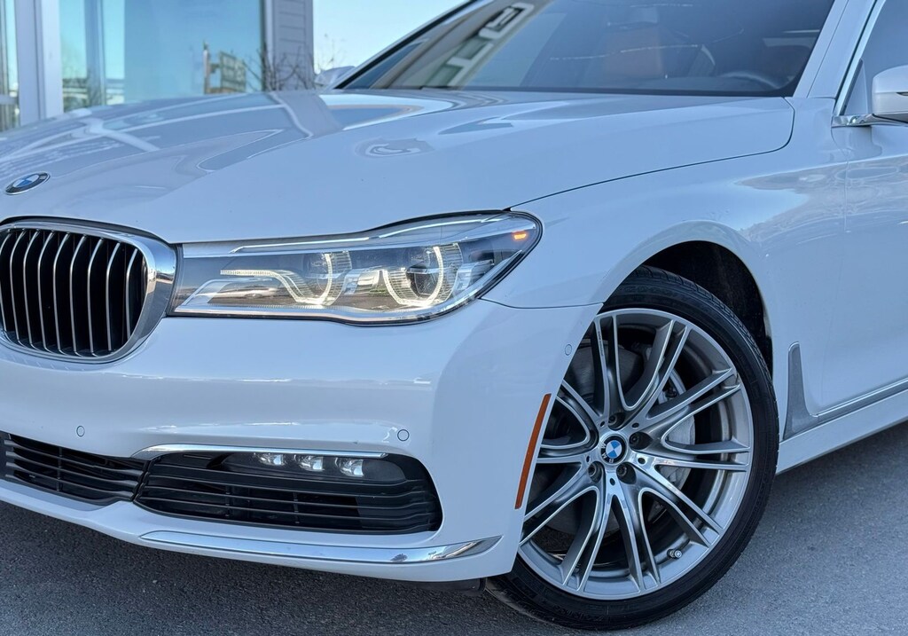 White Metallic 2018 BMW 7 Series 750i RWD 8-Speed Automatic 4.4L V8 32V Twin Turbocharged Cognac Leather.