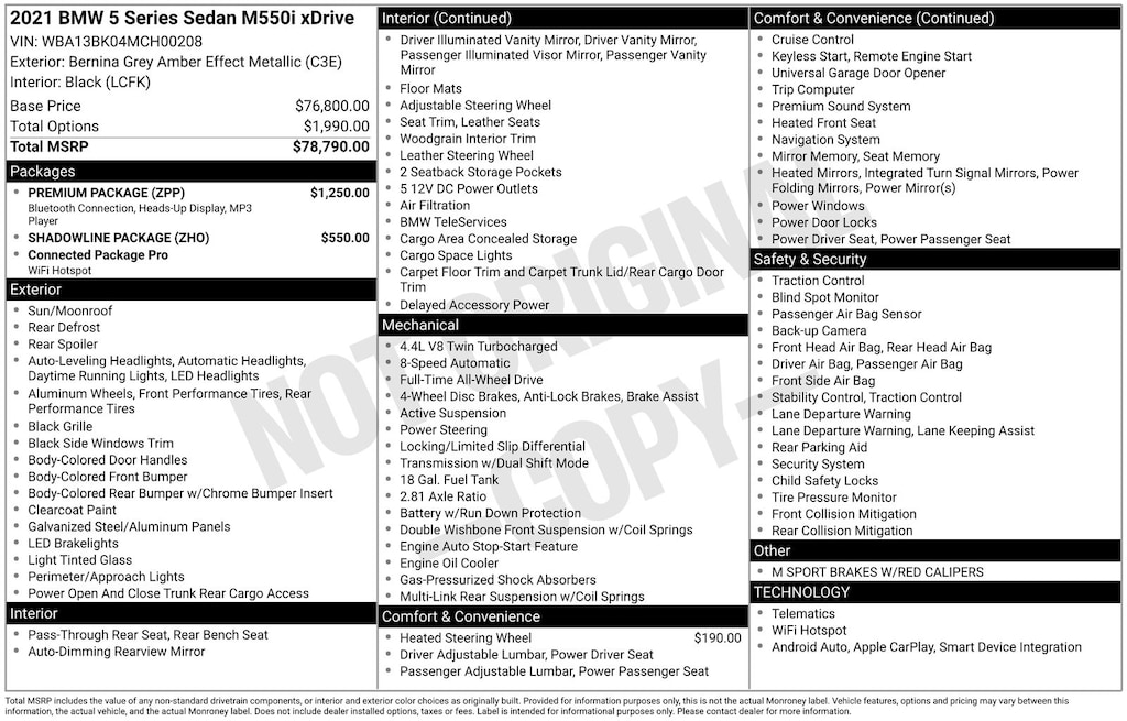 Bernina Gray Amber Effect Metallic 2021 BMW 5 Series M550i xDrive AWD 8-Speed Automatic Sport 4.4L V8 Twin Turbocharged AWD, Black Leather.