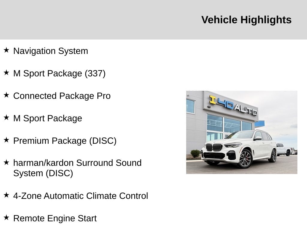 Connected Package Pro, M Sport Package (Adaptive M Suspension, Aerodynamic Kit, High-Gloss Shadowline Roof Rails, M Steering Wheel, Shadowline Exterior Trim, Vernasca Leather Upholstery (MC), Wheels: 20" x 9" M Star-Spoke Bi-Color, and Without Lines Designation Outside), M Sport Package (337), Premium Package (DISC) (4-Zone Automatic Climate Control, Enhanced USB & Bluetooth, Gesture Control, harman/kardon Surround Sound System (DISC), Head-Up Display, Remote Engine Start, WiFi Hotspot, and Wireless Charging), Coffee Leather, 10 Speakers, 4-Wheel Disc Brakes, ABS brakes, Air Conditioning, Alloy wheels, AM/FM radio: SiriusXM with 360L, AM/FM Stereo, Apple CarPlay & Android Auto Compatibility, Apple CarPlay Compatibility, Auto High-beam Headlights, Auto tilt-away steering wheel, Auto-dimming door mirrors, Auto-dimming Rear-View mirror, Automatic temperature control, Axle Ratio: 3.385, BMW Assist eCall, BMW TeleServices, Brake assist, Bumpers: body-color, Compass, ConnectedDrive Services, Delay-off headlights, Driver door bin, Driver vanity mirror, Dual front impact airbags, Dual front side impact airbags, Electronic Stability Control, Emergency communication system: BMW Assist eCall, Exterior Parking Camera Rear, Four wheel independent suspension, Front anti-roll bar, Front Bucket Seats, Front Center Armrest, Front dual zone A/C, Front fog lights, Front reading lights, Fully automatic headlights, Garage door transmitter, Genuine wood console insert, Genuine wood dashboard insert, Genuine wood door panel insert, Head restraints memory, Heated door mirrors, Heated Front Seats, Heated front seats, Heated Front Seats w/Armrests & Steering Wheel, Hi-Fi Sound System, Illuminated entry, Knee airbag, Leather Shift Knob, Leather steering wheel, Live Cockpit Pro w/Navigation, Low tire pressure warning, Lumbar Support, M Sport Brakes w/Red Calipers, Memory seat, Navigation System, Occupant sensing airbag, Outside temperature display, Overhead airbag, Panic alarm, Passenger door bin, Passenger vanity mirror, Power adjustable front head restraints, Power door mirrors, Power driver seat, Power Front Seats, Power moonroof, Power passenger seat, Power steering, Power windows, Radio data system, Rain sensing wipers, Rear air conditioning, Rear anti-roll bar, Rear reading lights, Rear seat center armrest, Rear window defroster, Rear window wiper, Remote keyless entry, Roof rack: rails only, Security system, SensaTec Upholstery, Speed control, Speed-sensing steering, Speed-Sensitive Wipers, Split folding rear seat, Spoiler, Sport Seats, Sport steering wheel, Steering wheel memory, Steering wheel mounted audio controls, Tachometer, Telescoping steering wheel, Tilt steering wheel, Traction control, Trip computer, Turn signal indicator mirrors, Variably intermittent wipers, and Wheels: 19" x 9" V-Spoke (Style 734) Recent Arrival!