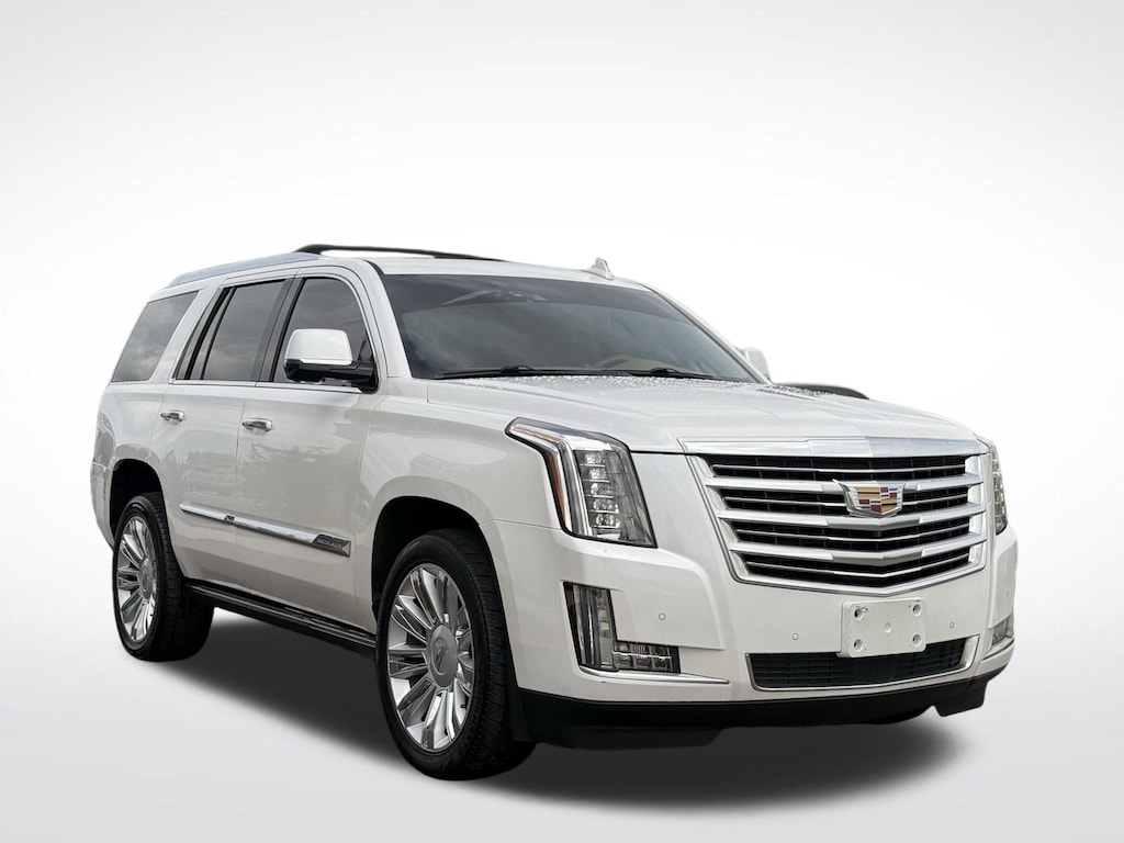 Crystal White Tricoat 2016 Cadillac Escalade Platinum Edition 4WD 8-Speed Automatic Vortec 6.2L V8 SIDI 4WD, Tuscan Brown Leather, Adaptive Full-Speed Range Cruise Control, Automatic Safety Belt Tightening, Cooled Console w/Covered Storage, Driver Assist Package, Dual DVD Screens, Electronic Powered Parking Brake, Forward Collision Alert, Front & Rear Automatic Braking, Illuminated Door Handles, IntelliBeam Headlamps, Lane Keep Assist, Leather Wrapped IP/Console/Door, Microfiber Sueded Headliner, Navigation System, Platinum Package, Platinum Sill Plates, Power Tilt-Sliding Sunroof w/Express-Open/Close, Preferred Equipment Group 1SD, Premium Floor Mats, Rear Cross-Traffic Alert, Rear Seat Entertainment System, Reconfigurable 4-Color Head-Up Display, Second Row Bucket Seats, Side Blind Zone Alert, Theft-Deterrent Alarm System, Theft-Deterrent Package, Unique Exotic Wood, Unique Grille Design, VAC Power 17" Disc Brakes, Vehicle Inclination Sensor, Vehicle Interior Movement Sensor.