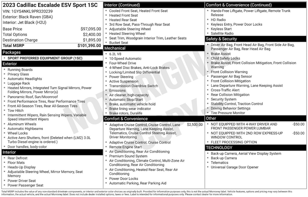 Discover the epitome of luxury and capability in this 2023 Cadillac Escalade ESV Sport. This commanding SUV boasts a striking Black exterior, complemented by a spacious and meticulously crafted interior that exudes unparalleled refinement.