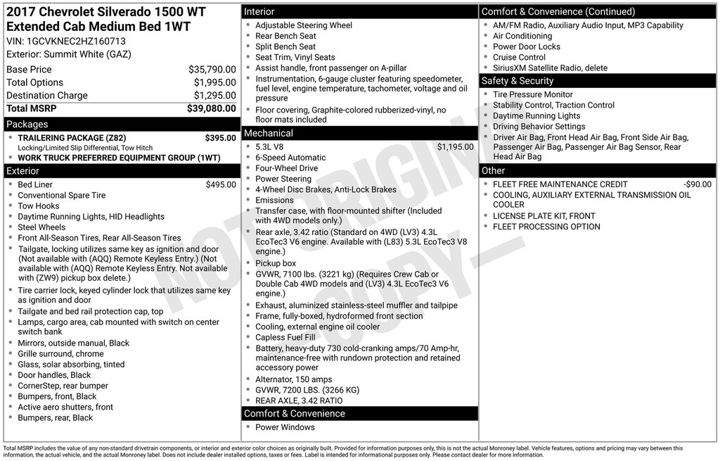Summit White 2017 Chevrolet Silverado 1500 WT 4WD 6-Speed Automatic Electronic with Overdrive EcoTec3 5.3L V8 6-Speed Automatic Electronic with Overdrive, 4WD, Dark Ash With Jet Black Interior Accents Vinyl.