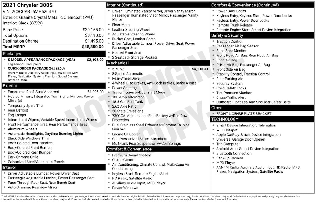 Granite Crystal Metallic Clearcoat 2021 Chrysler 300 S RWD 8-Speed Automatic HEMI 5.7L V8 Multi Displacement VVT