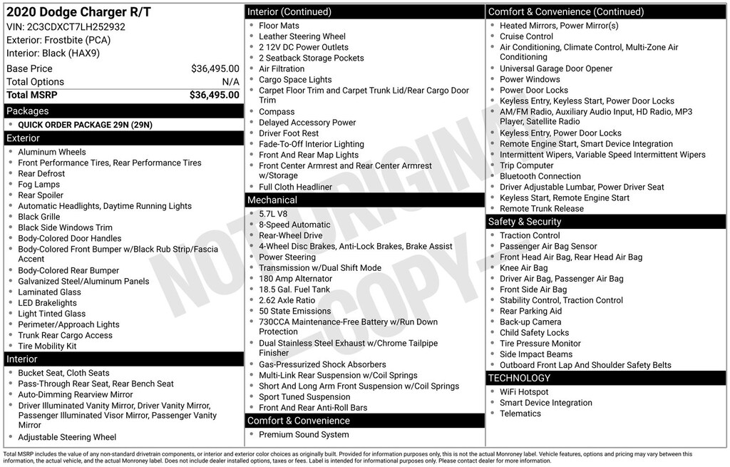Frostbite 2020 Dodge Charger R/T RWD 8-Speed Automatic HEMI 5.7L V8 Multi Displacement VVT Black Cloth.