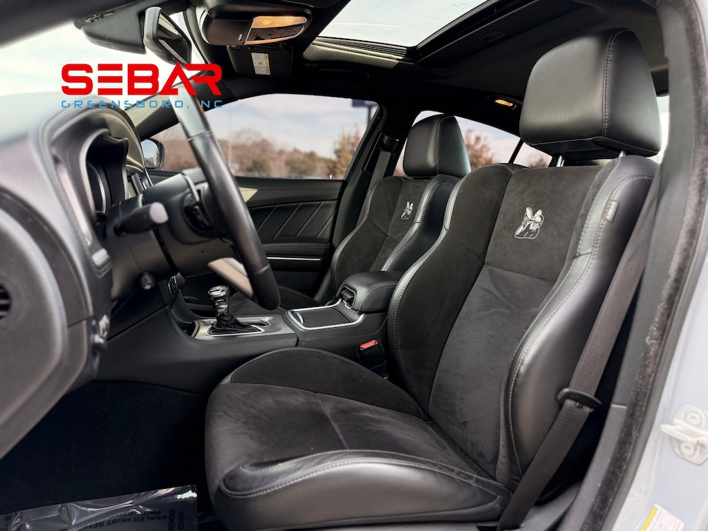Stepping inside, you'll be greeted by a wealth of premium features that elevate the cabin. The Uconnect 4C Nav system with an 8.4-inch display provides seamless connectivity and navigation, while the power sunroof floods the interior with natural light. The Scat Pack logo Nappa/Alcantara seats offer exceptional comfort and support, and the heated steering wheel and front seats ensure a cozy ride in any weather.