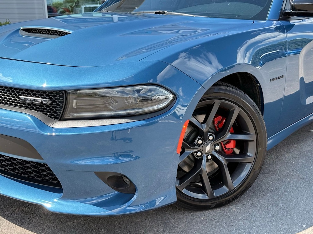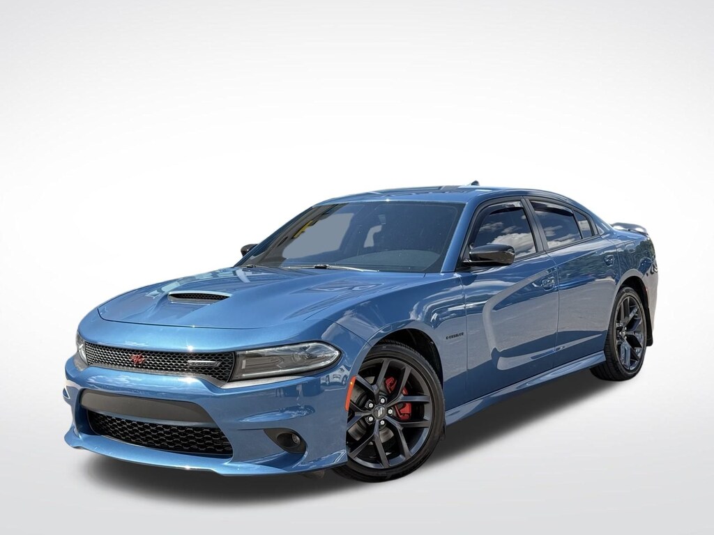 Blacktop Package (Black 1-Piece Performance Spoiler, Black Dodge Grille Badge, Blacktop R/T Badge, Gloss Black I/P Cluster Trim Rings, HEMI Blacktop Fender Badge, Rhombi 2-Pc Wheel Center Cap, Satin Black Charger Decklid Badge, Satin Black Dodge Tail Lamp Badge, and Wheels: 20" x 8" Black Noise Painted), Quick Order Package 26N, Black Cloth, Power driver seat, Power steering, 4-Wheel Disc Brakes, 6 Speakers, ABS brakes, Air Conditioning, Alloy wheels, AM/FM radio: SiriusXM, Anti-whiplash front head restraints, Apple CarPlay, Apple CarPlay/Android Auto, Auto-dimming Rear-View mirror, Automatic temperature control, Body Color Exterior Mirrors, Brake assist, Bumpers: body-color, Cloth Performance Seats, Compass, Delay-off headlights, Driver door bin, Driver vanity mirror, Dual front impact airbags, Dual front side impact airbags, Electronic Stability Control, Emergency communication system: SiriusXM Guardian, Four wheel independent suspension, Front anti-roll bar, Front Bucket Seats, Front Center Armrest, Front dual zone A/C, Front fog lights, Front reading lights, Fully automatic headlights, Garage door transmitter: HomeLink, Google Android Auto, GPS Antenna Input, Heated door mirrors, Illuminated entry, Integrated Center Stack Radio, Integrated Voice Command w/Bluetooth, Knee airbag, Leather Shift Knob, Low tire pressure warning, Media Hub (2 USB, AUX), Occupant sensing airbag, Outside temperature display, Overhead airbag, Overhead console, Panic alarm, ParkView Rear Back-Up Camera, Passenger door bin, Passenger vanity mirror, Power 2-Way Driver Lumbar Adjust, Power door mirrors, Power windows, Radio: Uconnect 4C w/8.4" Display, Rear anti-roll bar, Rear reading lights, Rear seat center armrest, Rear window defroster, Remote keyless entry, Speed control, Speed-Sensitive Wipers, Split folding rear seat, Spoiler, Sport steering wheel, Steering wheel mounted audio controls, Tachometer, Telescoping steering wheel, Tilt steering wheel, Traction control, Trip computer, USB Host Flip, Variably intermittent wipers, and Wheels: 20" x 8" Satin Carbon Aluminum.