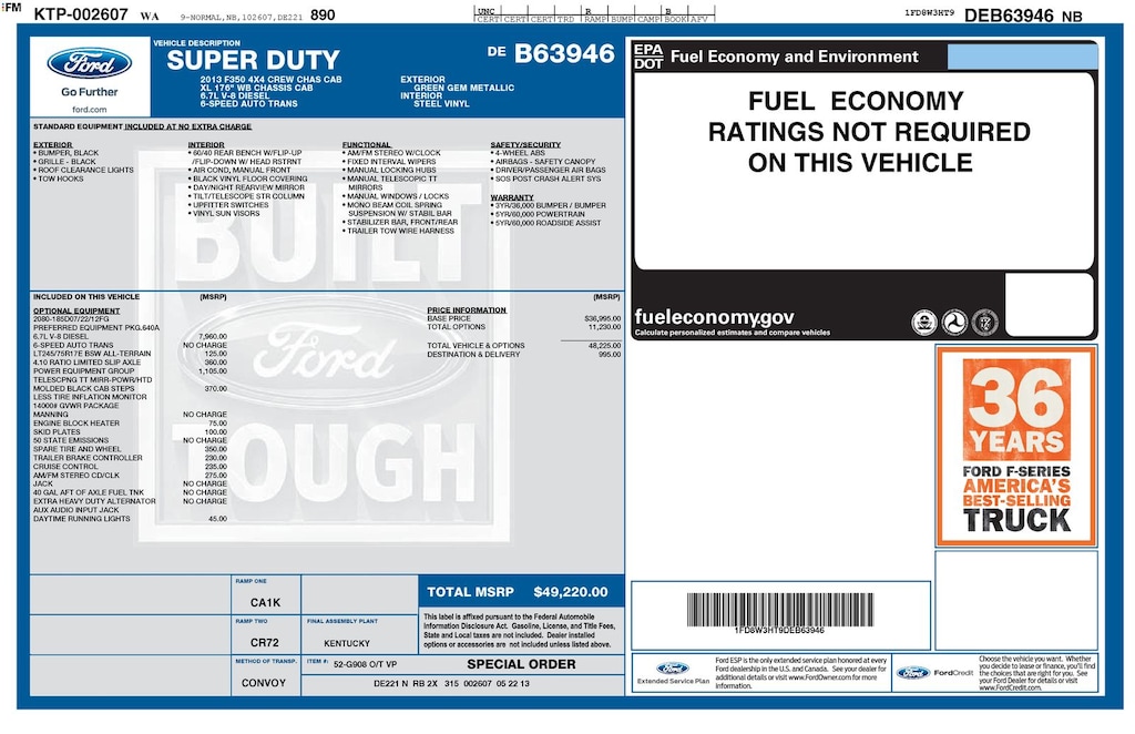 Green 2013 Ford F-350SD DRW 4WD TorqShift 6-Speed Automatic with Overdrive Power Stroke 6.7L V8 DI 32V OHV Turbodiesel 4WD.