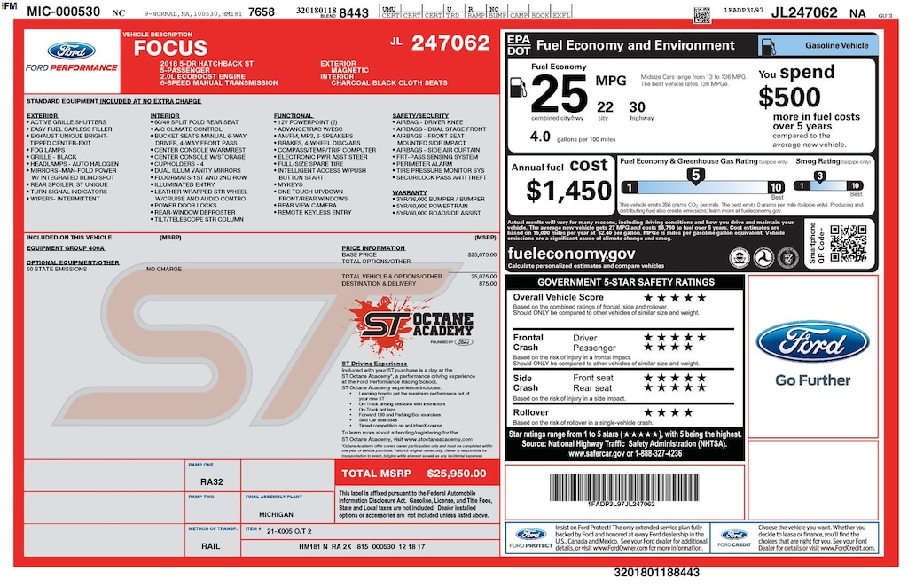 Don't miss your chance to experience the ultimate in hot hatch performance. Visit our showroom today and let us put you behind the wheel of this remarkable 2018 Ford Focus ST. We're confident you'll be impressed by its capabilities and eager to take it home.