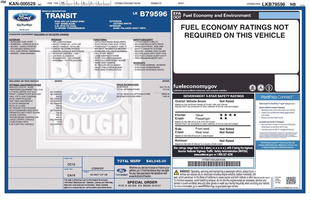 Oxford White 2020 Ford Transit-250 RWD 10-Speed Automatic with Overdrive V6