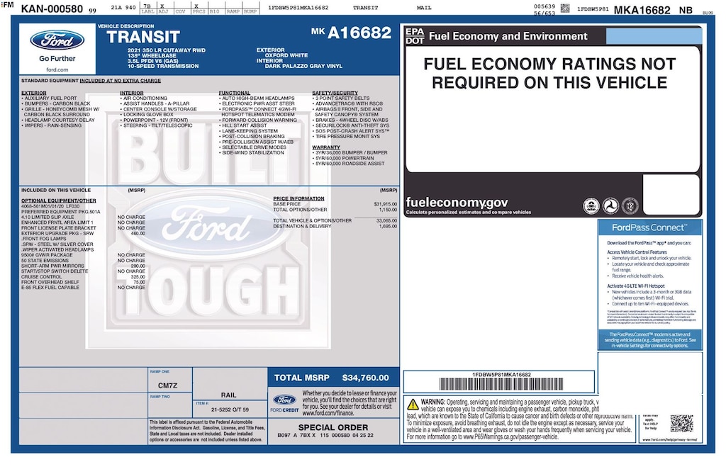 Oxford White 2021 Ford Transit-350 RWD 10-Speed Automatic with Overdrive V6