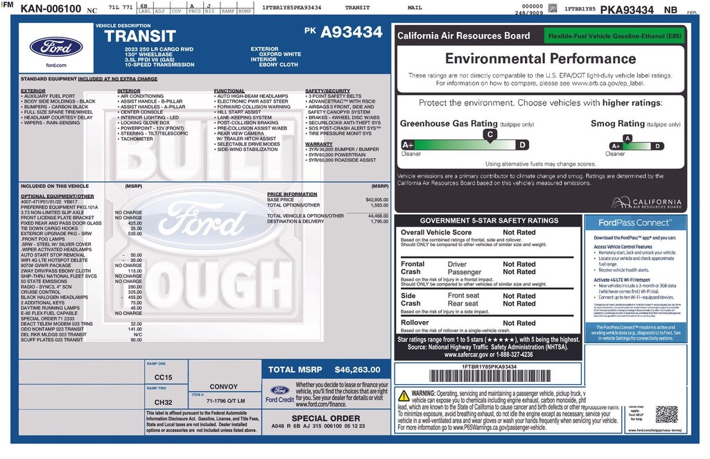 Oxford White 2023 Ford Transit-250 RWD 10-Speed Automatic with Overdrive 3.5L V6 Flex Fuel