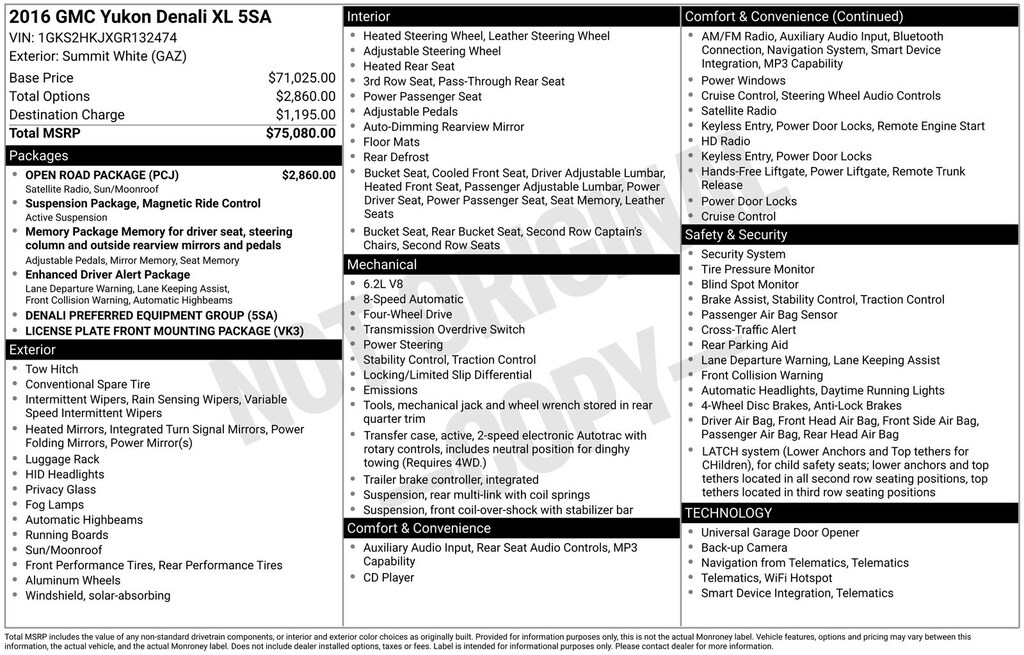 Summit White 2016 GMC Yukon XL Denali 4WD 8-Speed Automatic EcoTec3 6.2L V8 4WD.