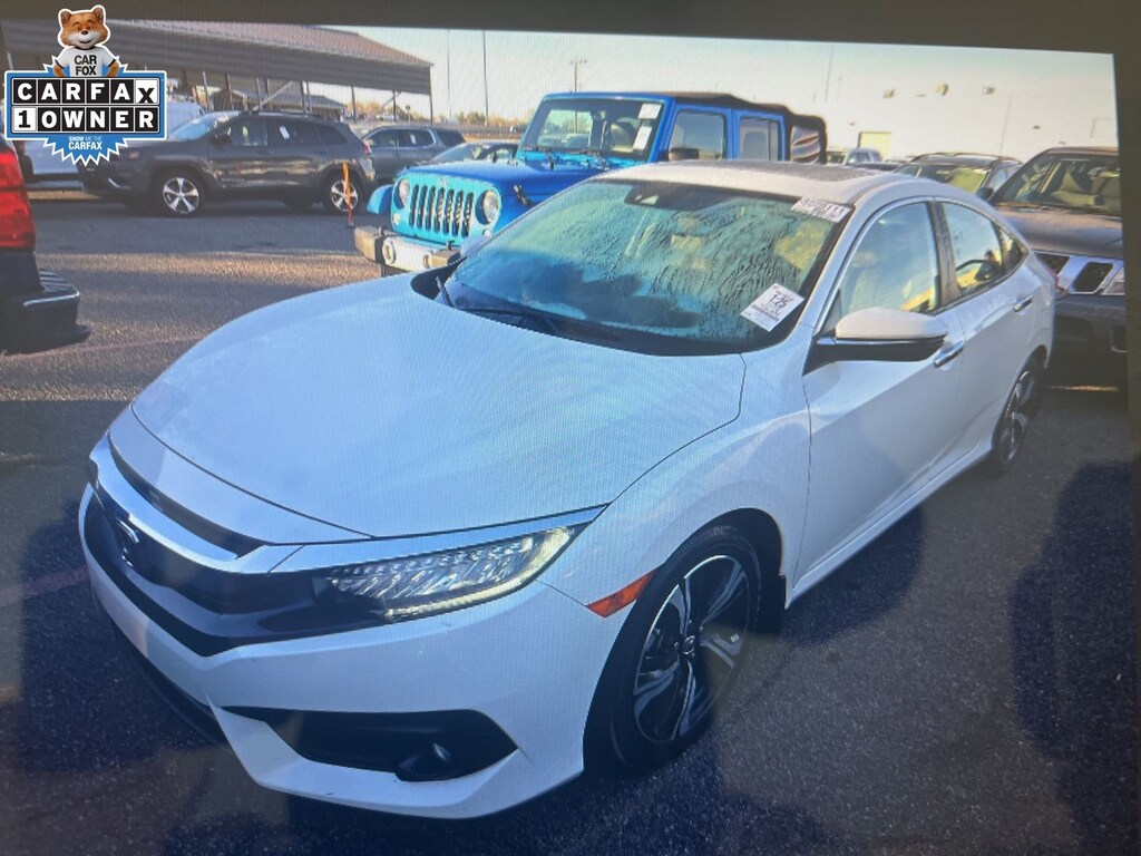 White 2016 Honda Civic Touring FWD CVT 1.5L I-4 DI DOHC Turbocharged Beige Leather.