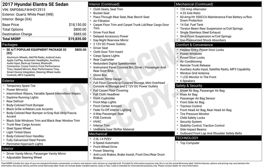 Quartz White Pearl 2017 Hyundai Elantra SE FWD 6-Speed Automatic 2.0L 4-Cylinder DOHC 16V