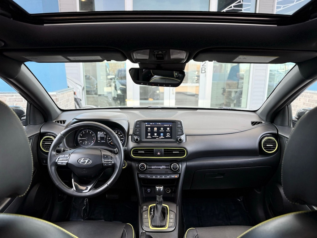 The Kona Limited also offers a wealth of advanced technology and convenience features, including Apple CarPlay & Android Auto, Auto-dimming Rear-View mirror, Compass, Driver vanity mirror, Garage door transmitter: HomeLink, Illuminated entry, Leather Shift Knob, Leather steering wheel, Outside temperature display, Overhead console, Passenger vanity mirror, Rear seat center armrest, Tachometer, Telescoping steering wheel, Tilt steering wheel, and Trip computer.