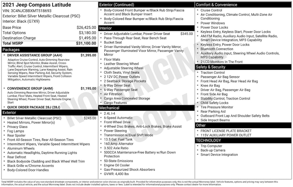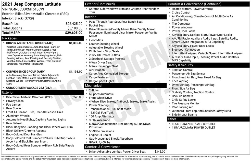 Billet Silver Metallic Clearcoat 2021 Jeep Compass Latitude FWD 6-Speed Aisin Automatic 2.4L I4