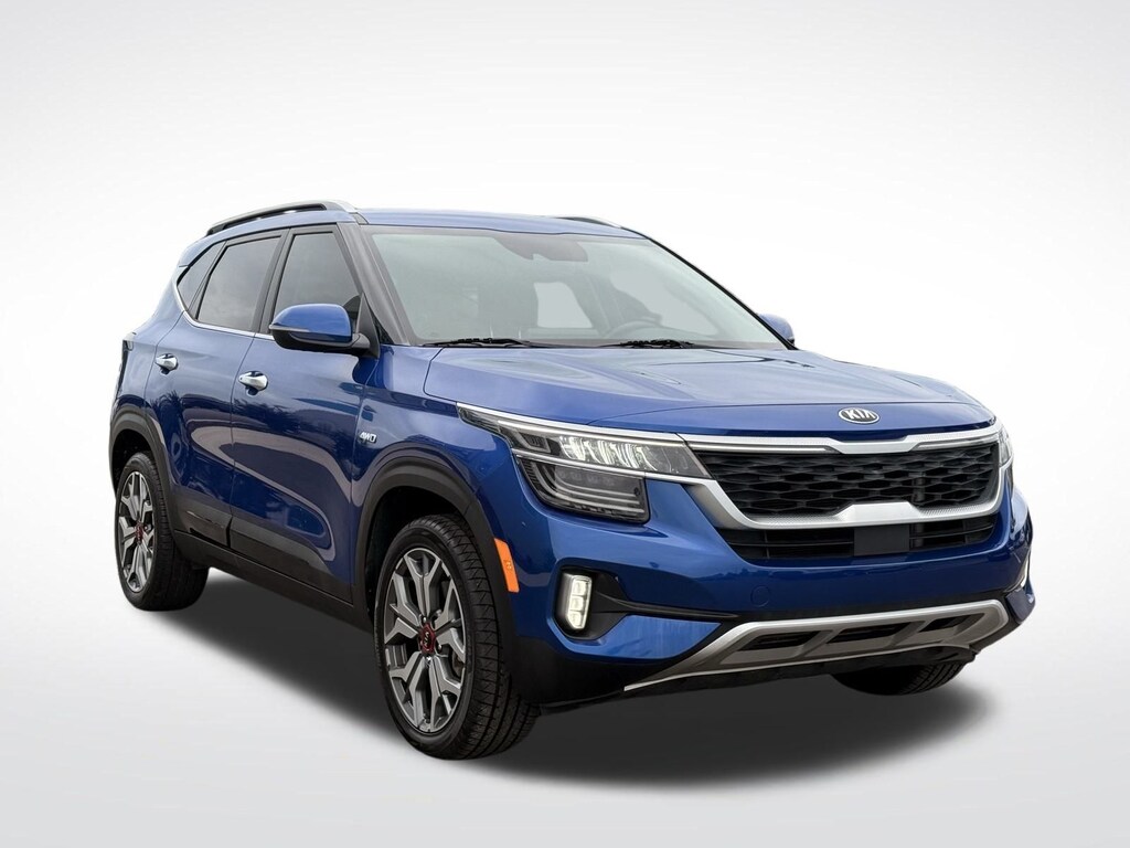 Neptune Blue 2021 Kia Seltos SX AWD 7-Speed Automatic I4 Navigation System.