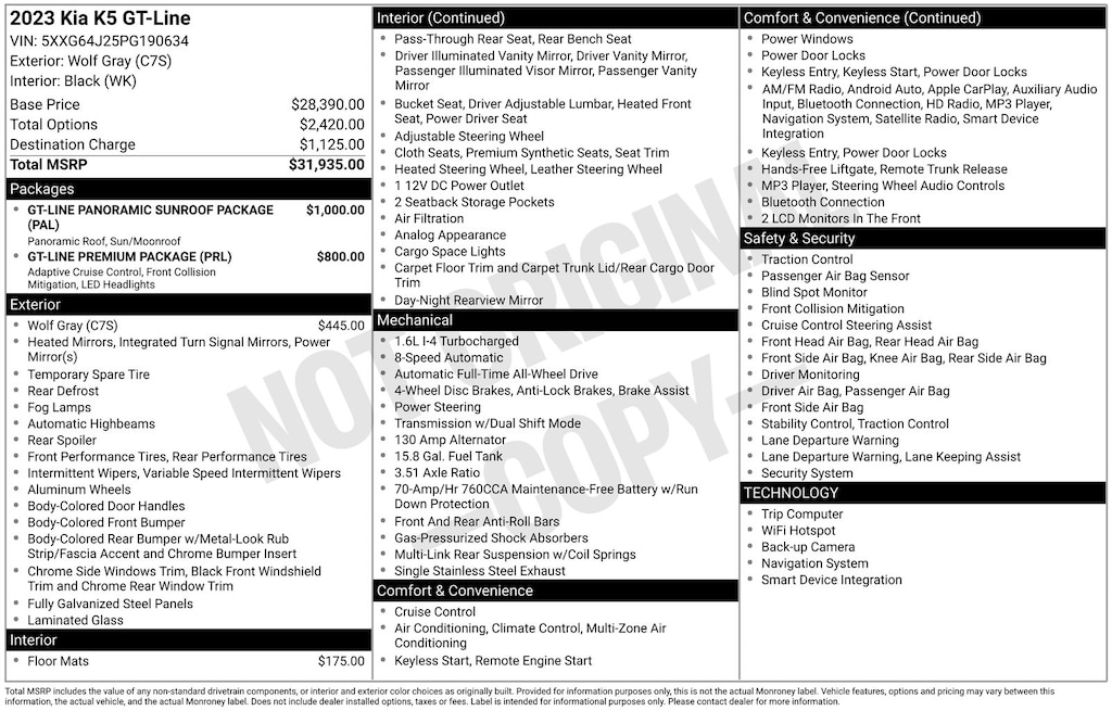 A comfortable ride with room to spare! A turbocharger is also included as an economical means of increasing performance. This 4 door, 5 passenger sedan still has fewer than 30,000 miles! Kia infused the interior with top shelf amenities, such as: a trip computer, an overhead console, and power windows. Smooth gearshifts are achieved thanks to the efficient 4 cylinder engine, and for added security, dynamic Stability Control supplements the drivetrain.