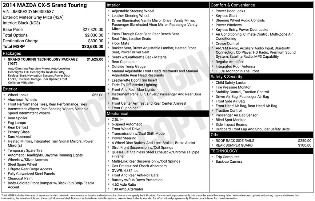 Meteor Gray Mica 2014 Mazda CX-5 Grand Touring FWD 6-Speed Automatic SKYACTIV® 2.5L 4-Cylinder DOHC 16V