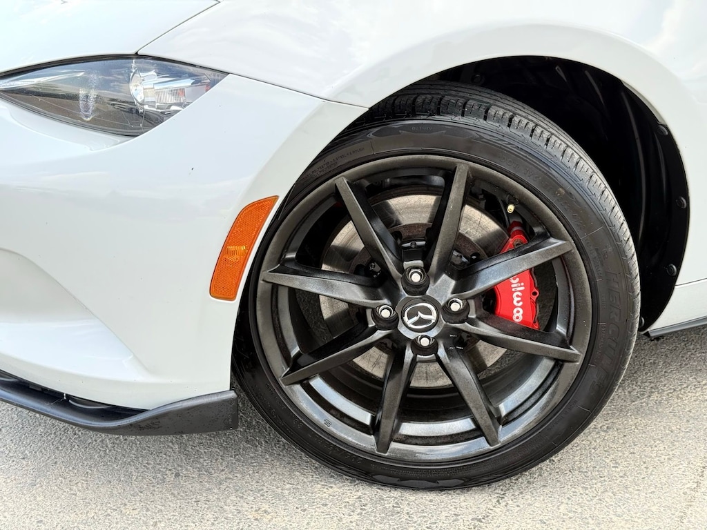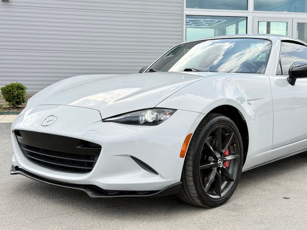 4-Wheel Disc Brakes, 9 Speakers, ABS brakes, Advanced Keyless Entry System, Air Conditioning, Alloy wheels, AM/FM radio: SiriusXM, Brake assist, Bumpers: body-color, CD player, Cloth Upholstery w/Red Stitching, Convertible HardTop, Convertible roof lining, Convertible roof wind blocker, Driver vanity mirror, Dual front impact airbags, Dual front side impact airbags, Electronic Stability Control, Emergency communication system: Mazda Connect, Four wheel independent suspension, Front anti-roll bar, Front Bucket Seats, Front Center Armrest, Glass rear window, Illuminated entry, Leather Shift Knob, Low tire pressure warning, Occupant sensing airbag, Outside temperature display, Panic alarm, Passenger vanity mirror, Power convertible roof, Power door mirrors, Power steering, Power windows, Radio data system, Radio: AM/FM/HD Stereo w/CD Player, Rear anti-roll bar, Rear window defroster, Remote keyless entry, Speed control, Speed-sensing steering, Spoiler, Sport steering wheel, Steering wheel mounted audio controls, Tachometer, Tilt steering wheel, Traction control, Trip computer, Variably intermittent wipers, and Wheels: 17" Dark Gunmetal Alloy. Recent Arrival! Odometer is 7333 miles below market average! 27/36 City/Highway MPG