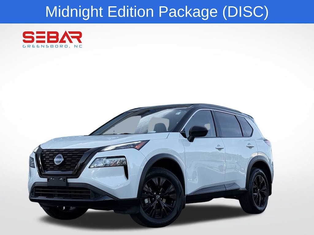 Pearl White Tricoat/Super Black 2023 Nissan Rogue SV AWD CVT with Xtronic 1.5L I3 Turbocharged DOHC 12V LEV3-ULEV50 201hp AWD, Black High Gloss Exterior Mirror Caps, First Aid Kit, Floor Mats w/1-Piece Cargo Area Protector, Heated Driver & Front Passenger Seats, Heated Leather Wrapped Steering Wheel, Leatherette Door Trim Inserts w/Stitch, Midnight Edition Package, Midnight Edition Package (DISC), Panoramic Moonroof, Power Liftgate, PRIMATEX Leatherette Seat Trim, Rear Door Sunshades, Rear Personal Lights, Security Alarm, Silver Painted Roof Rails, SV Premium B Package, TailorFit Leatherette Seat Trim, TailorFit Leatherette Seat Trim (DISC), Wheels: 18" Gloss Black Painted Alloy, Wheels: 18" Gloss Black Painted Alloy (DISC).