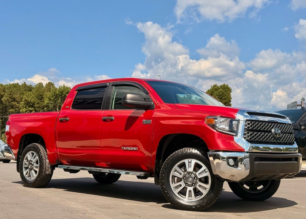 This has been the best truck I have ever driven. 2021 Toyota Tundra SR5 Crew Cab ( Trail Edition package) color is Army Green. The suspension comfortably dampens most bumps and pot holes. The 4 wheel drive works great in the snow. The steering is very lite and easy to turn. In tow/haul, The 5.7L and 6 speed trans pulls my 6000lb trailer with ease. It has a tight turning radius, so backing up my trailer is easy. The interior controls are all easy to reach and intuitive to use. The seats are cloth and comfortable. The interior room in my crew cab is massive. The back seats fold flat to the back wall, leaving a lot of room for hauling things out of the weather. The bed is 5’5” with a dampened tailgate . I have easily hauled plywood and lumber with the tailgate down. I also haul kayaks sticking out out of the bed without a problem. My truck has Toyota safety sense, with that is all of the modern safety features you can imagine. All features, gages and controls are working perfectly. The engine is powerful with some if that V8 engine tone in the cabin. I get an average fuel economy of 15mpg as my daily driver. I also got 18.2 mpg average on a mostly highway trip. I do notice a little body roll/lean when taking turns fast. The halogen headlights and fog lights are good. My truck is stock from Toyota, no changes or additions. This make and model year has impeccable reliability.